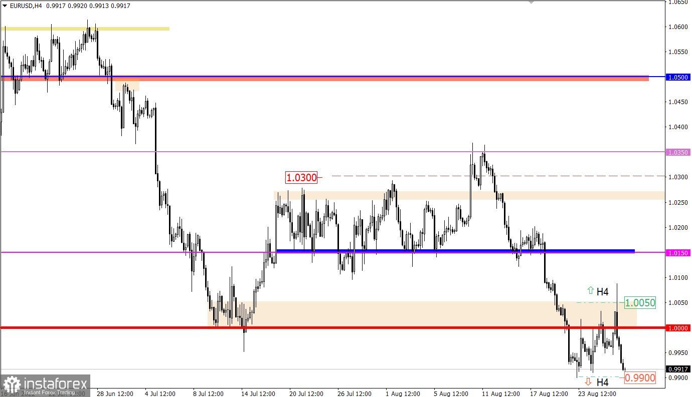 Последующее ослабления курса евро, которое приведет к пролонгации тренда, ожидается после удержания цены ниже отметки 0.9900 в четырехчасовом периоде.