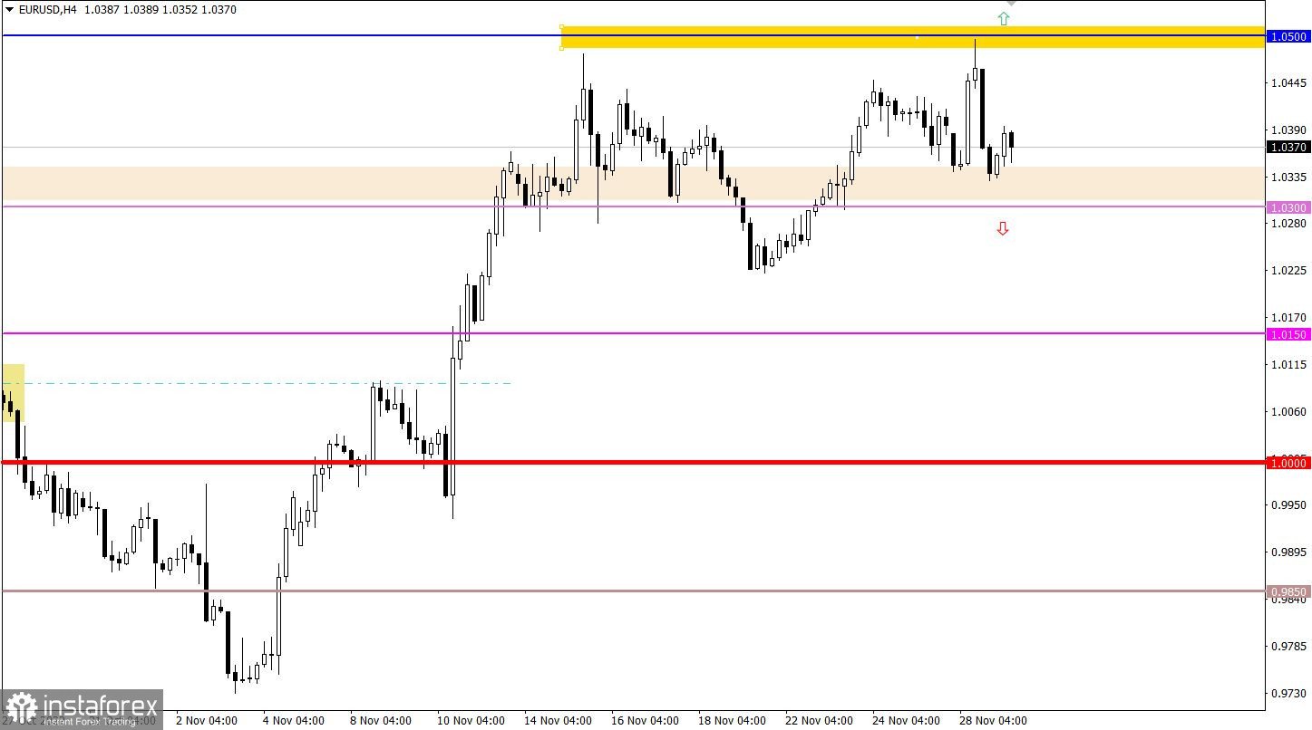 Нисходящий сценарий будет принят в работу в случае удержания цены ниже уровня 1.0300 в четырехчасовом периоде.