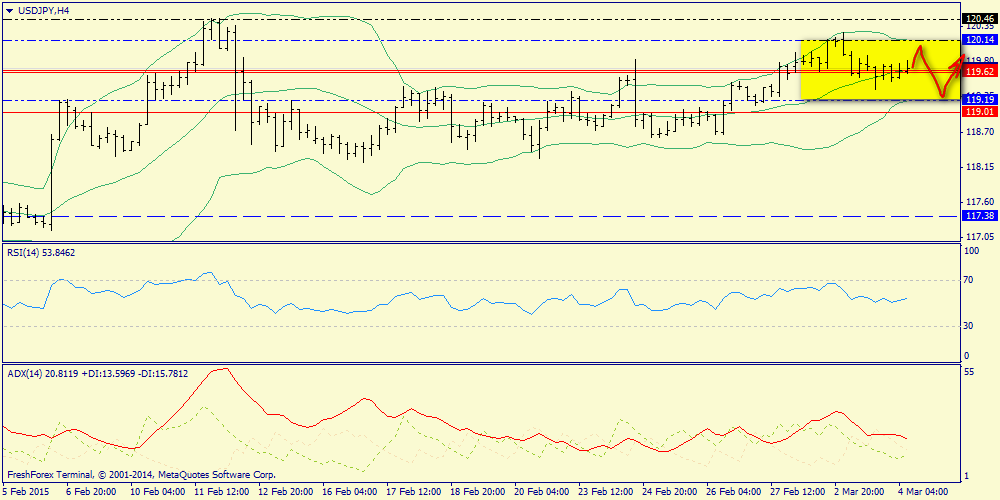 04 марта 2015, USD/JPY. Боковой диапазон торговли.