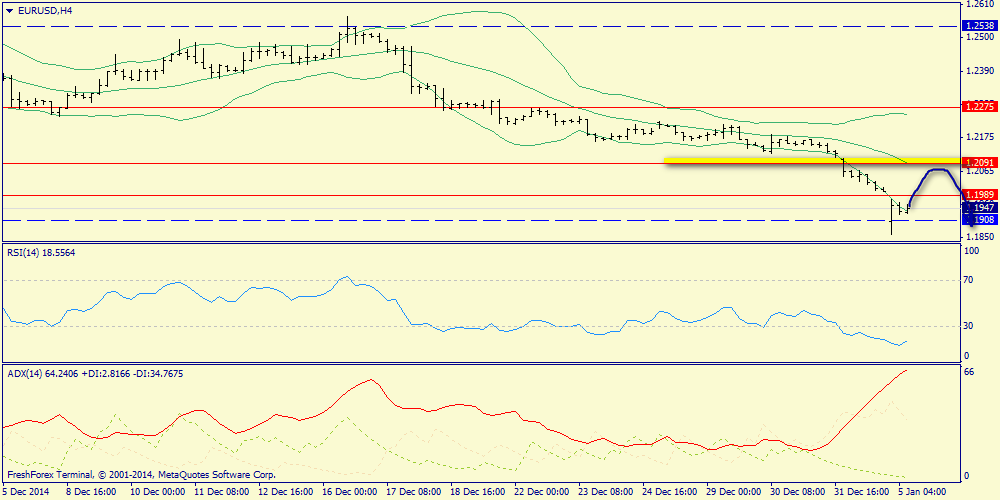 05 января 2015, EUR/USD. Вновь ожидается снижение к 1.1908.