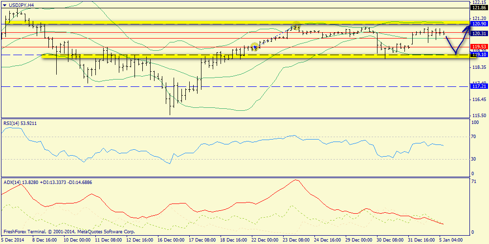 05 января 2015, USD/JPY. Ждем продолжение накопления в коридоре 120.10-120.68.