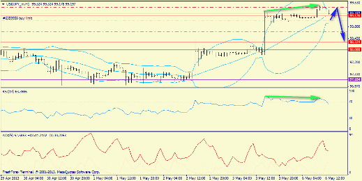 Н1: медвежья дивергенция как подтверждение. После касания 99.40, полагаю, пойдет в развитие коррекция вниз, в зону 98.324-98.00.