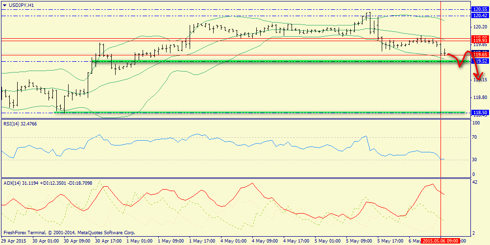 06 мая 2015, USD/JPY. Продаем к 118.50.