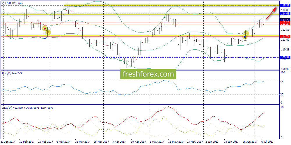 07 июля 2017, USD/JPY. Йена. Ждем продолжение роста к 114.43 и, возможно, к 115.38.