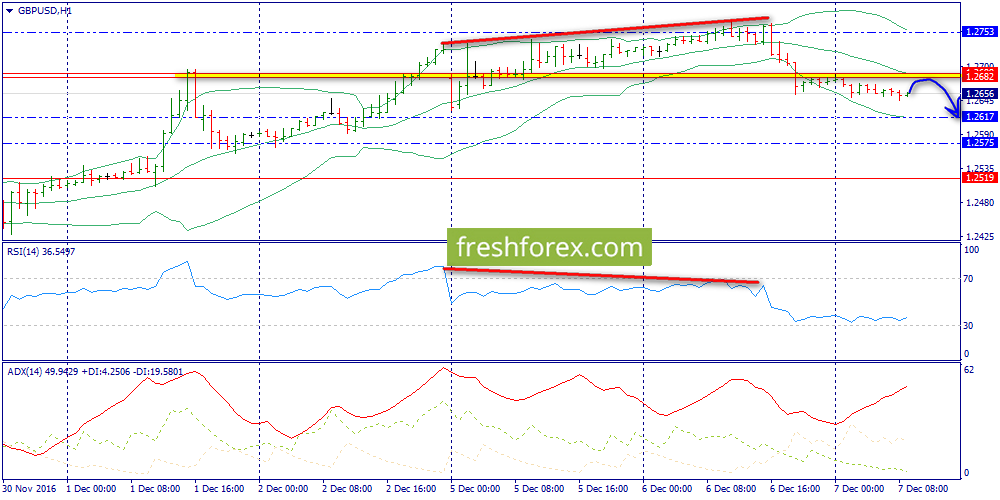 Торговые решения: продажи от 1.2682 к 1.2617, 1.2575, 1.2519.