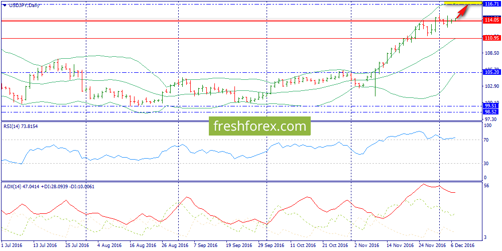 07 декабря 2016, USD/JPY. Йена. Пара нацелена на 116-ю фигуру.