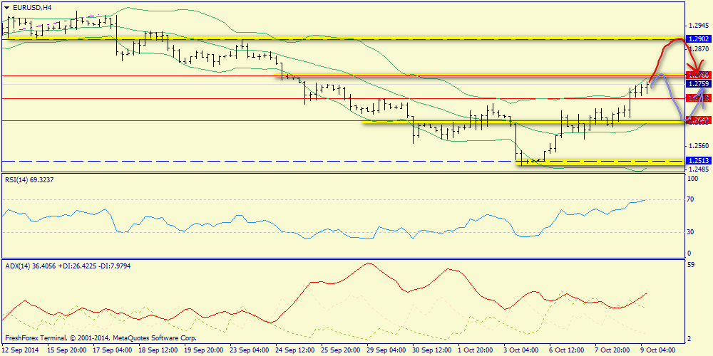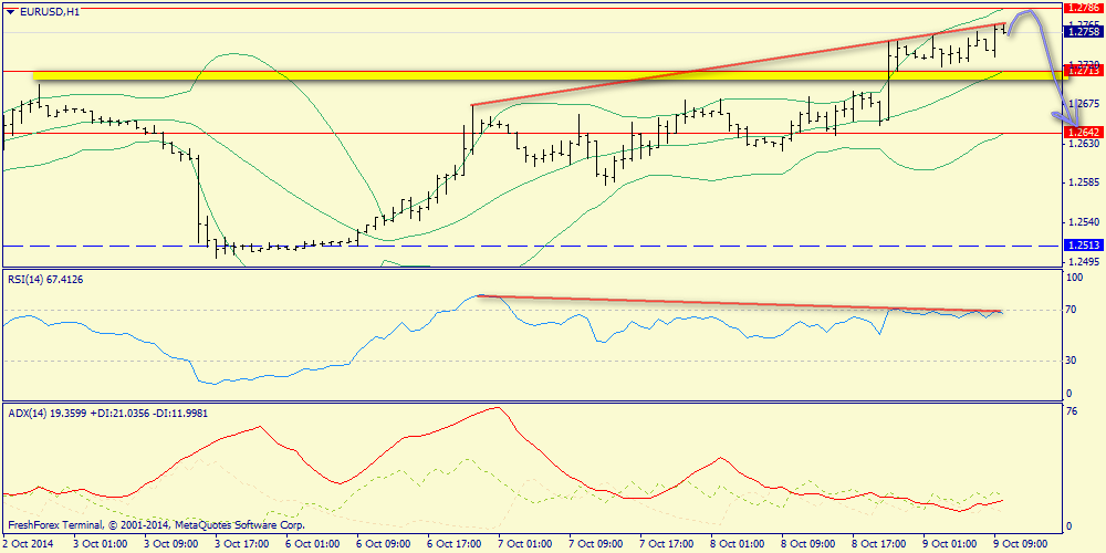 09 октября 2014, EUR/USD. Ждем касание 1.2786 и снижение к 1.2642.