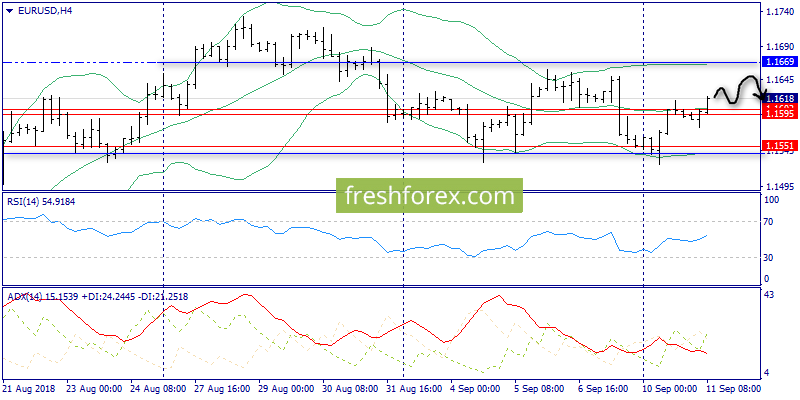 11 сентября 2018, EUR/USD. EURUSD, Рост к 1.1669.