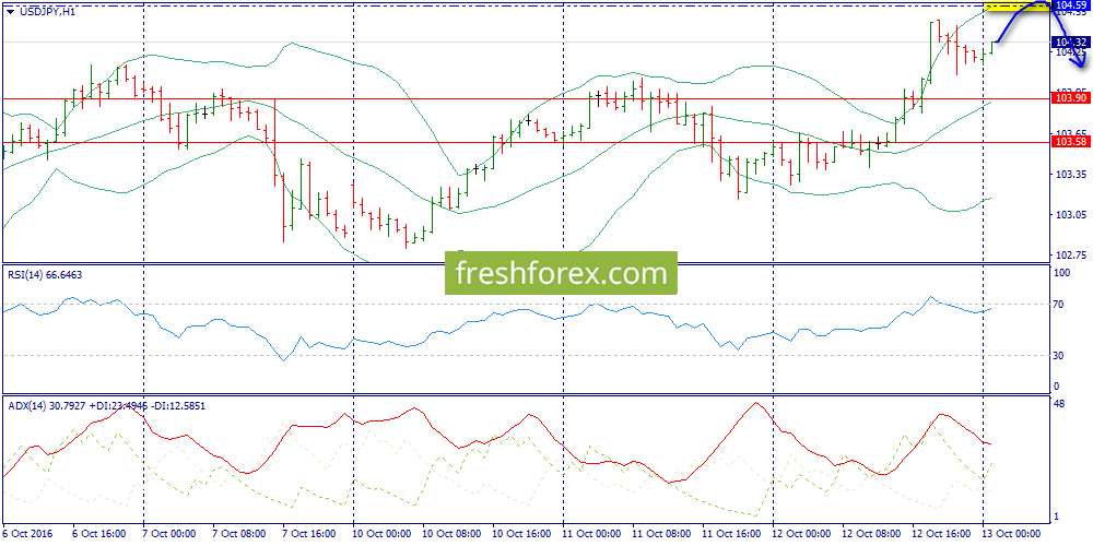 13 октября 2016, USD/JPY. Йена. Ждем доработку зоны 104.59 и затем откат вниз.