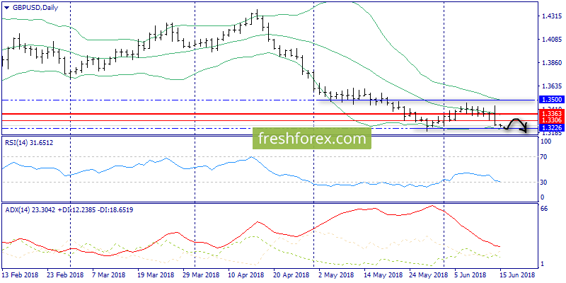 Дневной график: давление медведей на зону поддержки 1.3226 (нижняя полоса Боллинджера)может не иметь трендовой силы, о чем говорит очень слабое состояние ADX.
