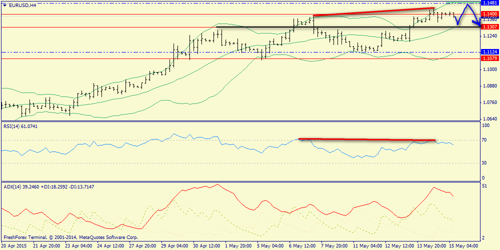 15 мая 2015, EUR/USD. Евро нуждается в коррекции.