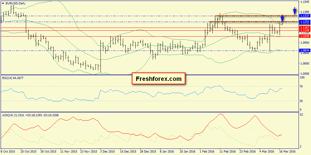 17 марта 2016, EUR/USD. Ждем отсечку бычьего движения на уровне 1.1337.