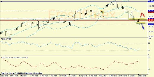 19 июня 2013, USD/JPY. Ключевые уровни - 94.00 и 95.70.