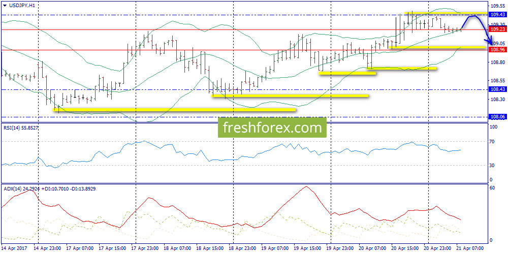 21 апреля 2017, USD/JPY. Йена. Уровень 109.43 может остановить восходящую коррекцию.
