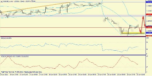 21 июня 2013, EUR/USD. 1.3304-1.3322 - вероятная зона распродаж евро.
