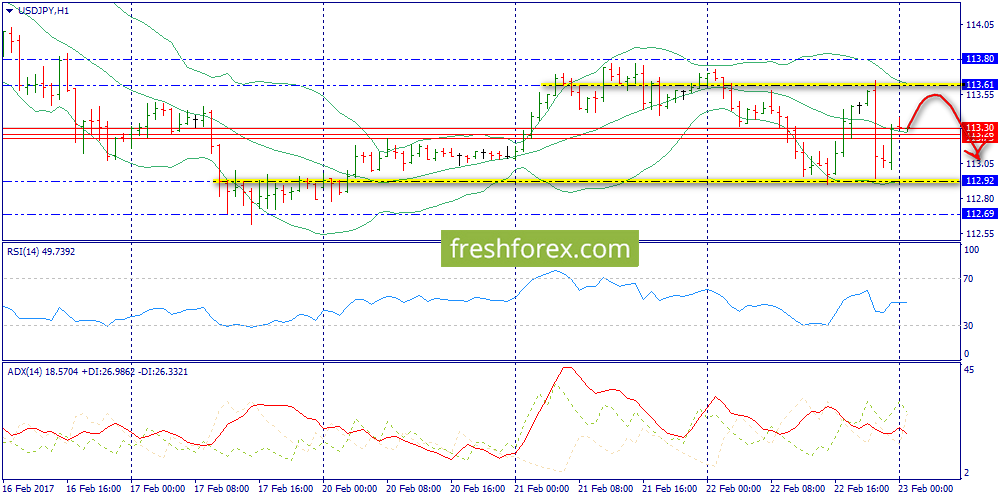 23 февраля 2017, USD/JPY. Йена. Флэт в коридоре 112.92-113.61.