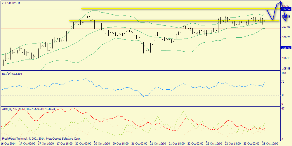 23 октября 2014, USD/JPY. Зона 108.00 может оказать серьезное сопротивление.