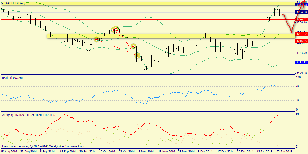 Вывод: итак, золото имеет потенциал к росту до 1378 долларов, однако предварительно возможен откат вниз, в зону 1234.82 для покупок.