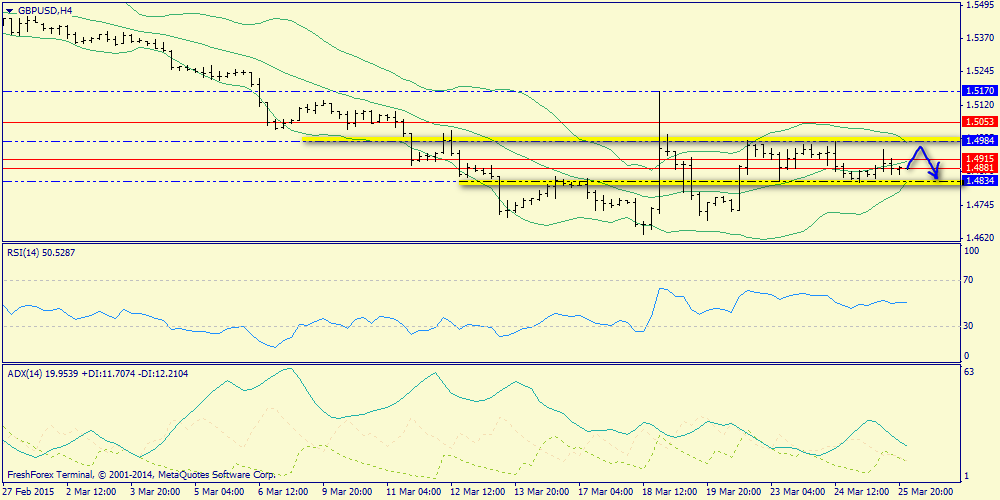 26 марта 2015, GBP/USD. Продолжение подготовки к снижению.