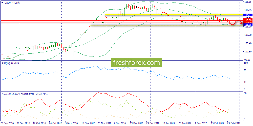 27 февраля 2017, USD/JPY. Йена. Ждем продолжение снижения в направлении 111.55.