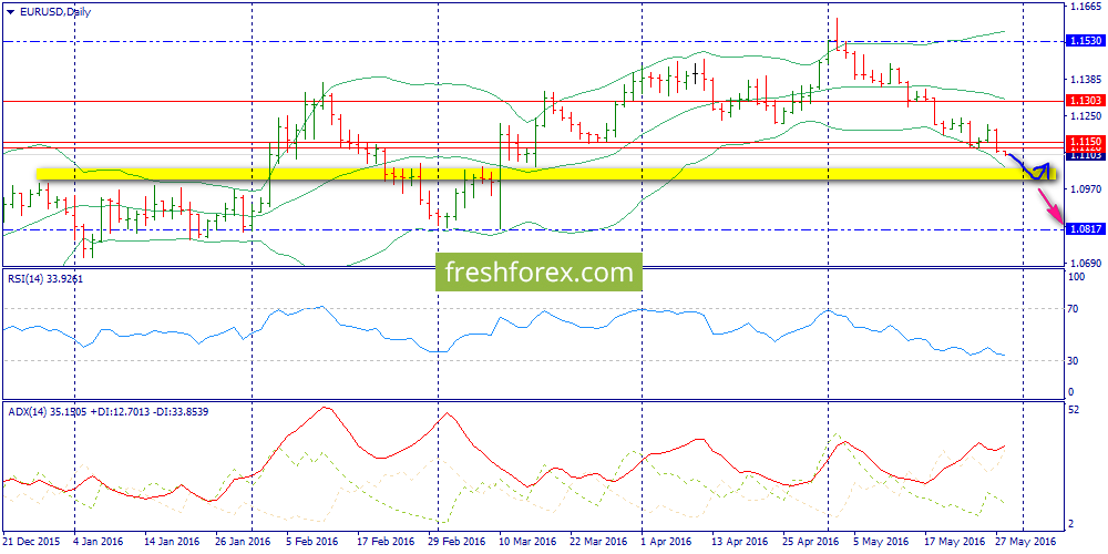30 мая 2016, EUR/USD. Евро. Есть высокая вероятность коррекции от 1.1074.