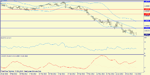 Недельный график: достаточно перепроданная ситуация, поэтому это повышает шансы на то, что будут предоставлены более выгодные точки для продаж вверху, в районе 0.9699. Лоу недели был лишь на 1 пп ниже предыдущего бара, поэтому можно отнести формацию к ИБ и в данном случае она все же медвежья. Ждем ложный вынос вверх как подтверждение.