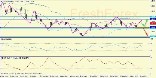 Вывод: основной сценарий - откат в начале недели в зону 1.3305, и последующее падение в зону 1.2812-1.2850, откуда, вероятно, начнется достаточно активный рост евро к целям от 1.35 и выше.
