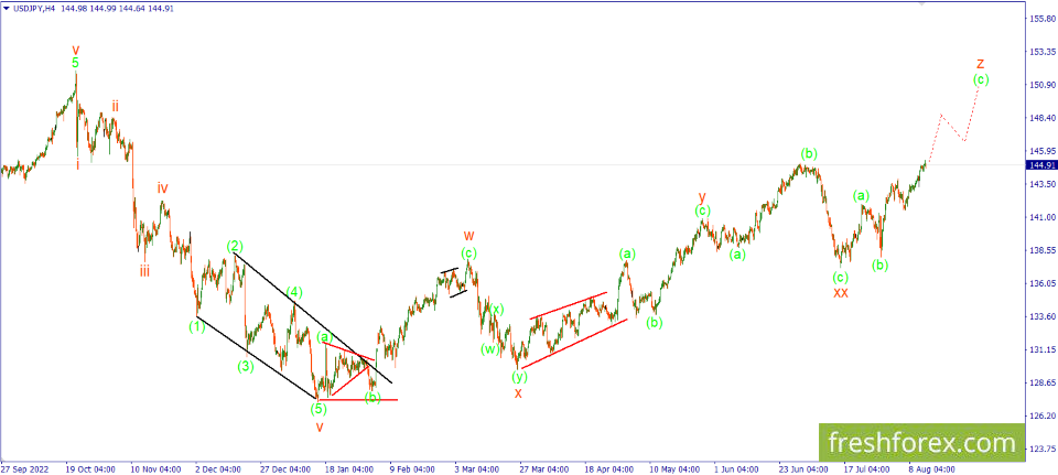 14 августа 2023, USD/JPY. USD/JPY. Рост в сложной коррекции продолжится.