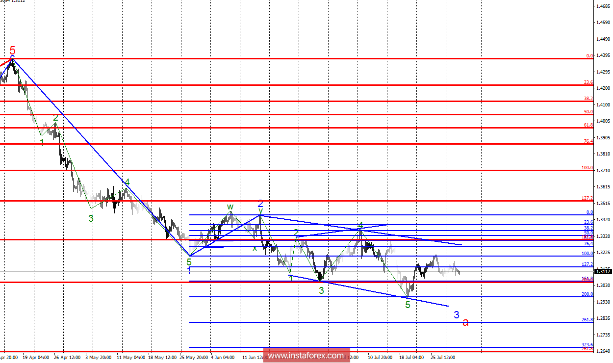 Волновой анализ GBP/USD за 1 августа. Заседание ФРС может привести к новому падению фунта.