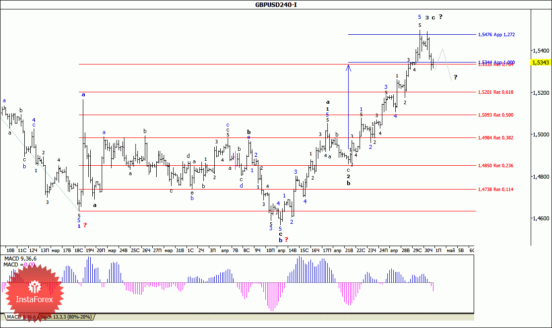 Волновой анализ валютной пары GBP/USD за 1 мая 2015 года