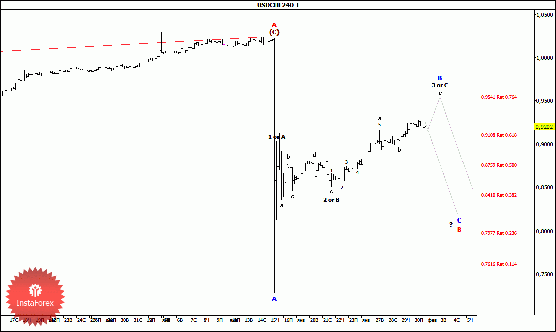 Волновой анализ валютной пары USD/CHF за 2 февраля 2015 года