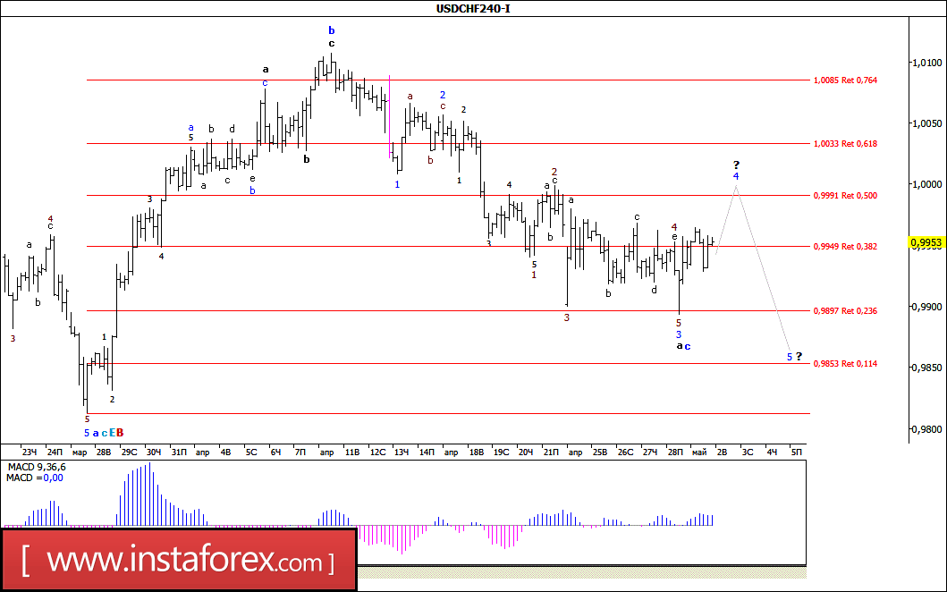 Волновой анализ валютной пары USD/CHF за 2 мая 2017 года