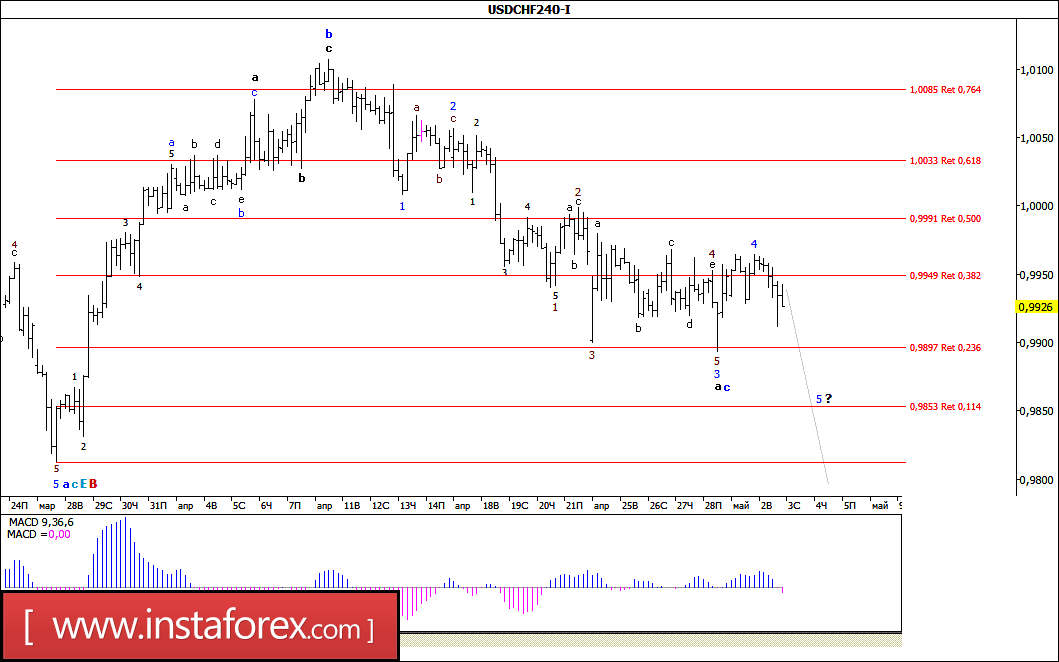Волновой анализ валютной пары USD/CHF за 3 мая 2017 года