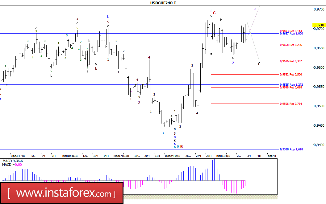 Волновой анализ валютной пары USD/CHF за 3 августа 2017 года