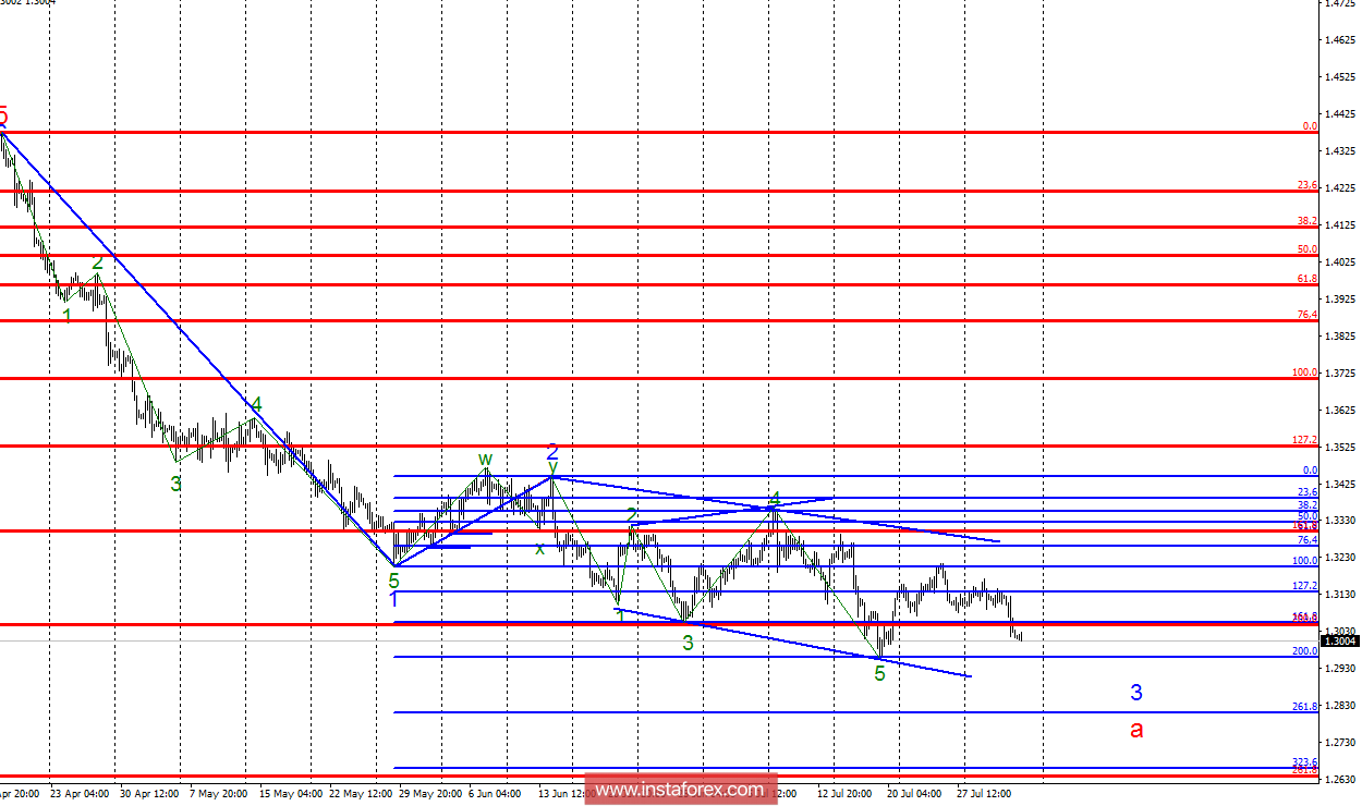 Волновой анализ GBP/USD за 3 августа. Банк Англии поспособствовал падению фунта.