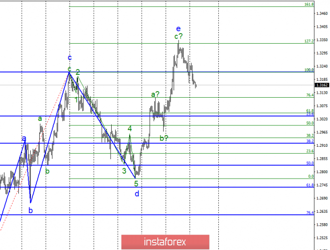 4 марта пара GBP/USD потеряла еще около 30 б.п. и, таким образом, продолжает находиться в рамках построения предполагаемой первой волны в составе нового понижательного участка тренда. Таким образом, я ожидаю продолжения снижения с первыми целями, расположенными около 31 и 30 фигур. В перспективе ожидаю снижения в район 27 фигуры. Новостной фон для фунт остается неблагоприятным, так как никаких положительных новостей по Brexit нет. Возможно, если они появятся, то фунт вновь начнет расти, но сейчас все идет к тому, что дата выхода Великобритании будет перенесена на два месяца.