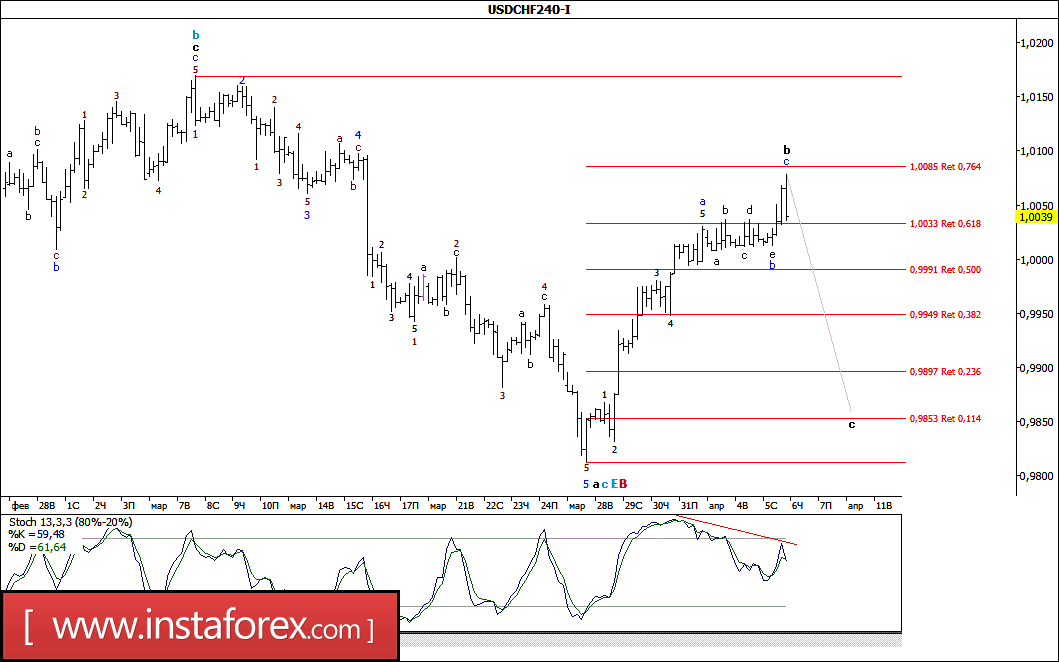 Волновой анализ валютной пары USD/CHF за 6 апреля 2017 года