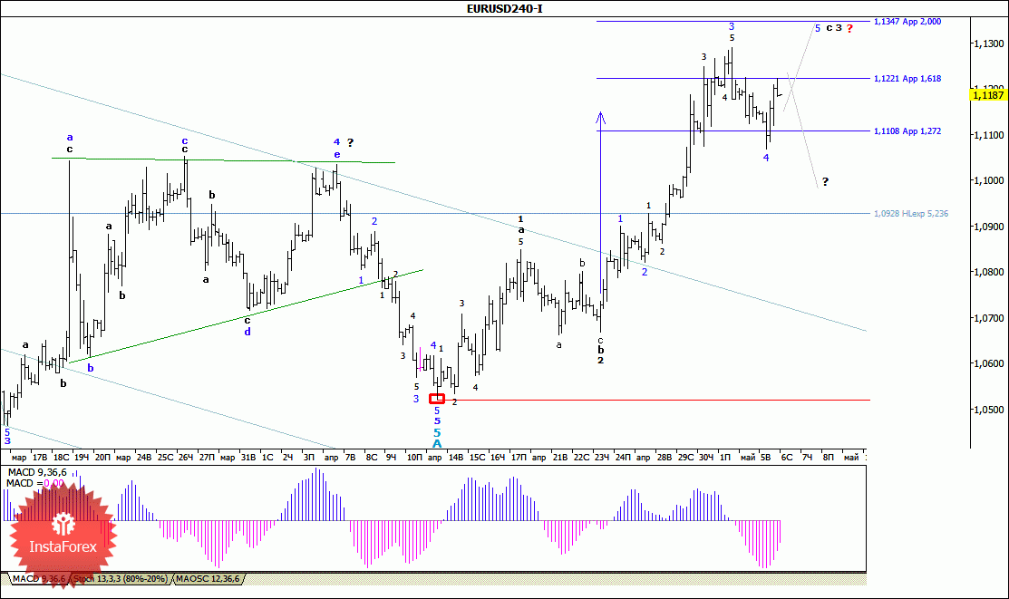 Волновой анализ валютной пары EUR/USD за 6 мая 2015 года