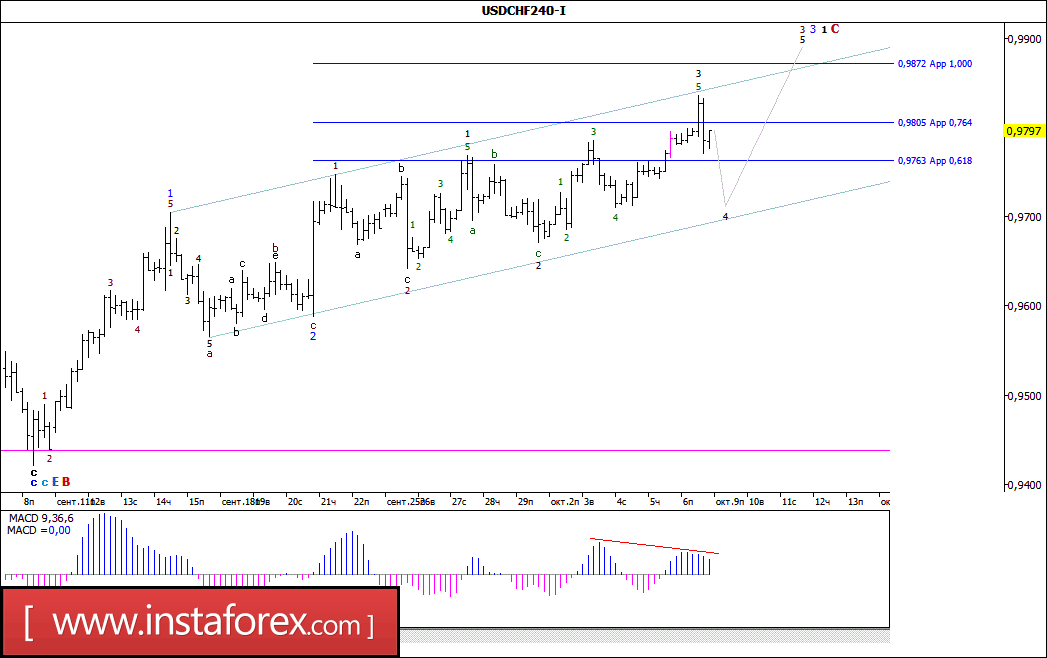 Волновой анализ валютной пары USD/CHF за 9 октября 2017 года