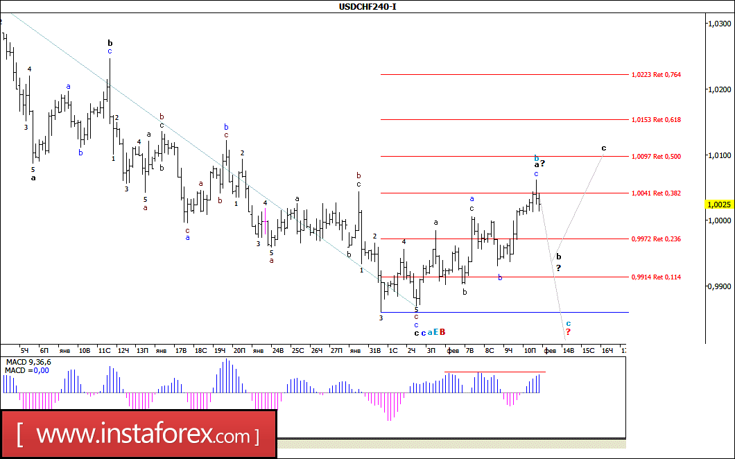 Волновой анализ валютной пары USD/CHF за 13 февраля 2017 года