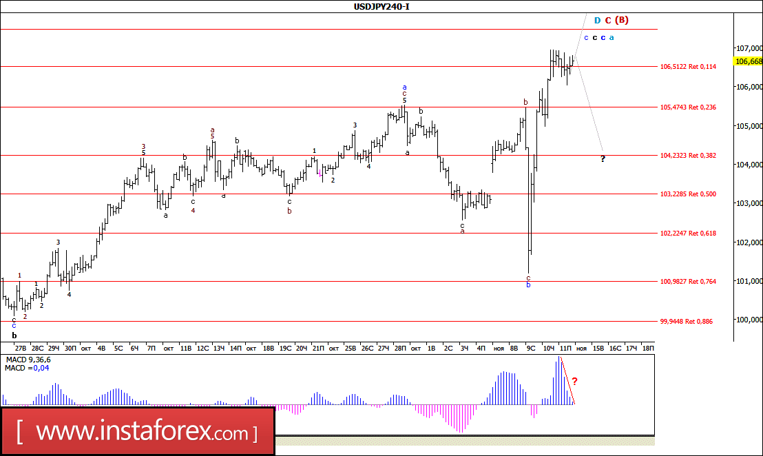Волновой анализ валютной пары USD/JPY за 14 ноября 2016 года