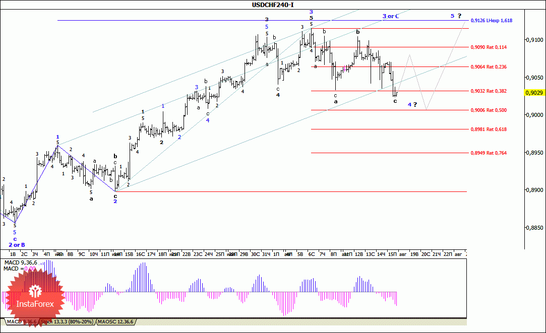 Волновой анализ валютной пары USD/CHF за 18 августа 2014 года