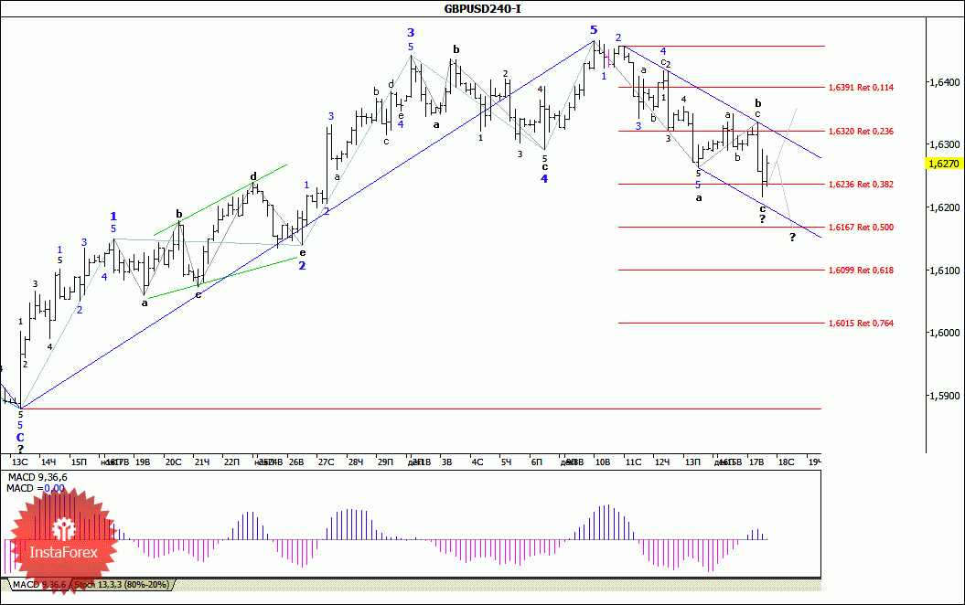 В целом, как и предполагалось, в ходе вчерашних торгов пара GBP/USD возобновила нисходящее движение, достигнув во второй половине дня отметки 1,6215. Таким образом, похоже на то, что цена продолжит формирование обозначившейся волны с, в составе текущей коррекции, в направлении отметки 1.6165, или уровня 61-й фигуры. В то же время если валютная пара найдет основания для возобновления роста котировок, то нет значимых препятствий для его начала уже от минимумов минувшего дня.