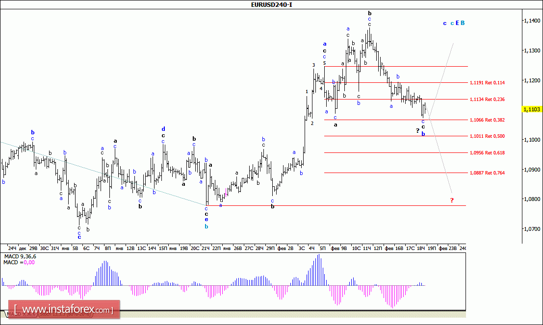 Волновой анализ валютной пары EUR/USD за 19 февраля 2016 года