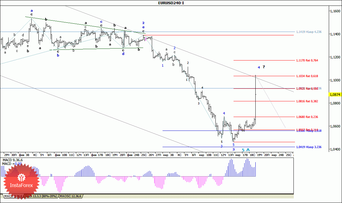 Волновой анализ валютной пары EUR/USD за 19 марта 2015 года