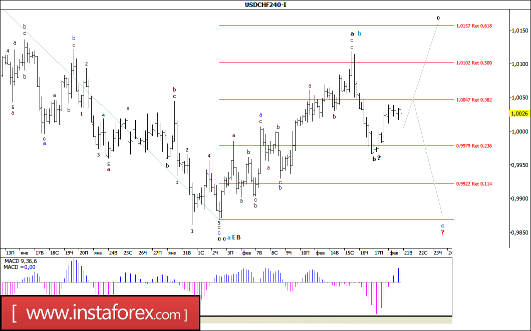 Волновой анализ валютной пары USD/CHF за 21 февраля 2017 года