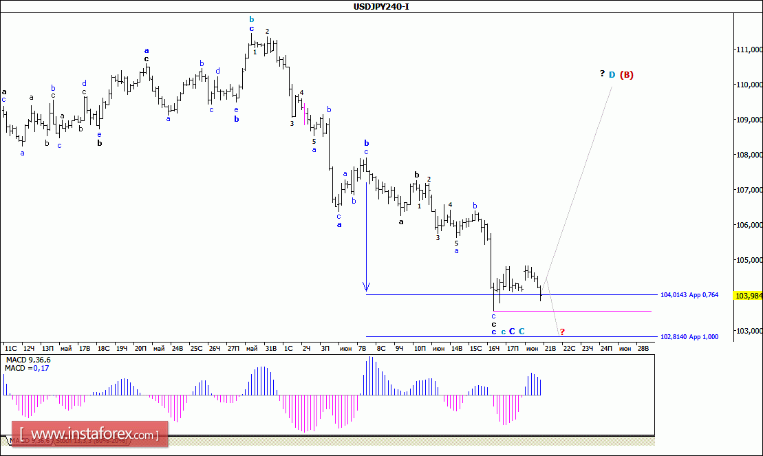 Волновой анализ валютной пары USD/JPY за 21 июня 2016 года