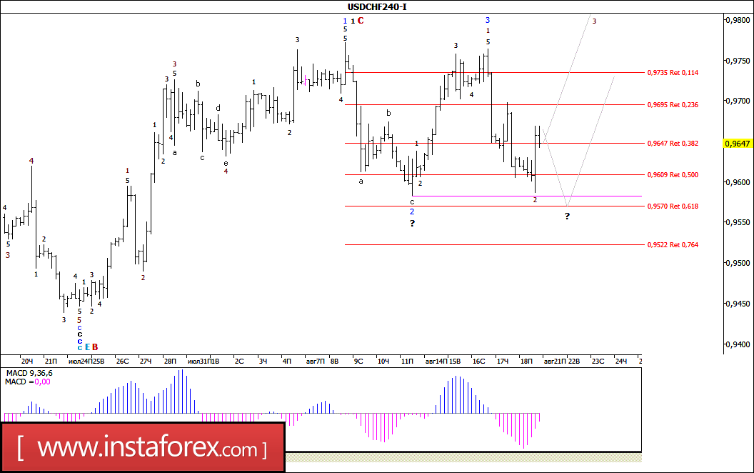 Волновой анализ валютной пары USD/CHF за 21 августа 2017 года