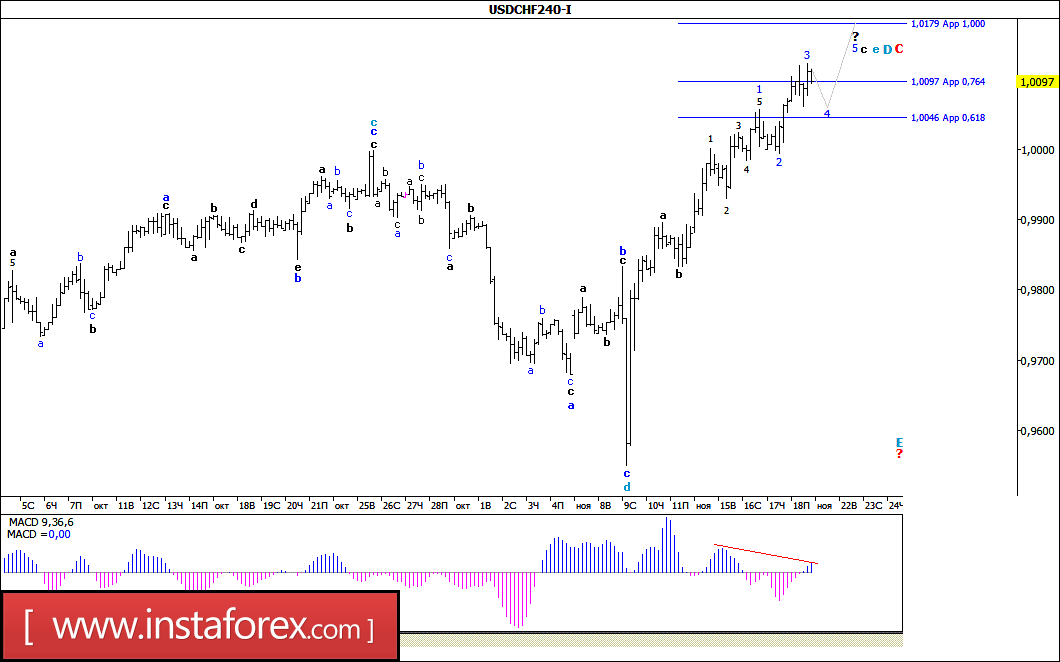 Волновой анализ валютной пары USD/CHF за 21 ноября 2016 года