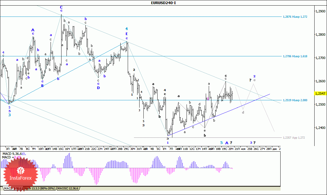 Волновой анализ валютной пары EUR/USD за 21 ноября 2014 года